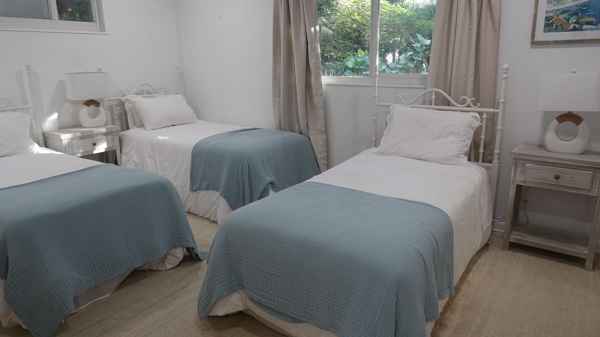 The combined levels sleep 10 total. We have twin beds in each of the 3 bedrooms. 2 full baths Full kitchen, a living room, and an outdoor deck that has a dining area and sitting area, as well as an outdoor shower.