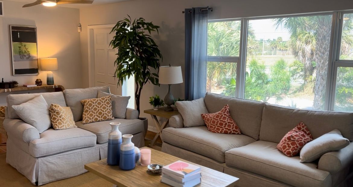 Comfort and easy coastal design. Roomy spaces and tons of natural vegetation on the property are in view. Cozy linens for sleeping and beautiful natural light during the day.