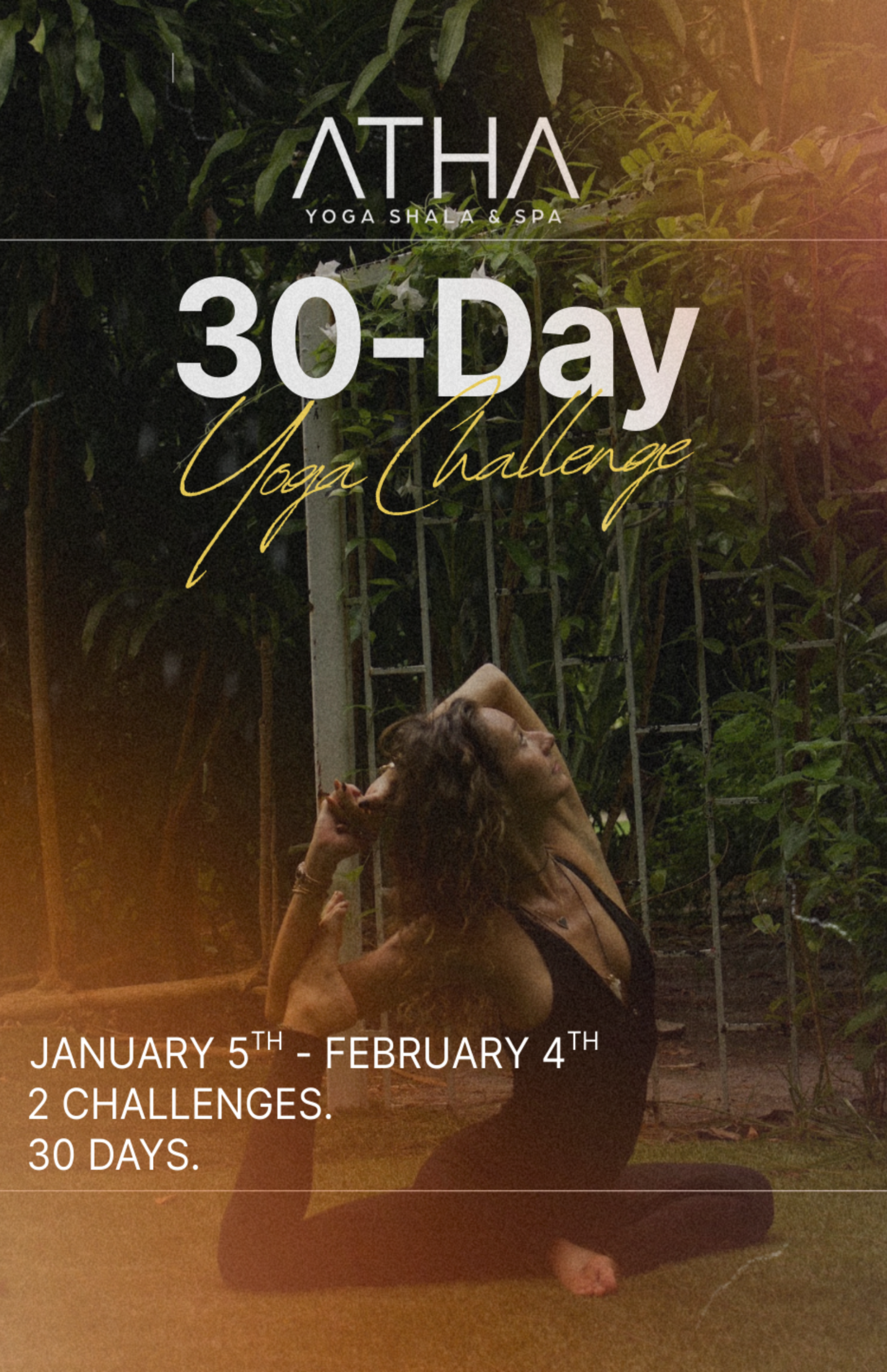 The 30-Day Yoga Challenge at Atha Yoga Shala is your space to move with intention, breathe with awareness, and reconnect with your inner rhythm.